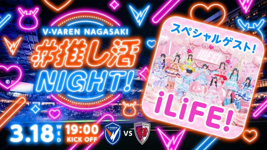 LIVE 概要 タイトル 『#推し活NIGHT』「明治安田J1百年構想リーグ第7節 V・ファーレン長崎 vs.京都サンガF.C.」 開催日 2026年3月18日 場所 長崎 出演 LIVE 動画 LIVE セットリスト SE 会いにKiTE! アイドルライフスターターパック LIVE SNS 🔷-𝙎𝙋𝙀𝘾𝙄𝘼𝙇 𝙈... -