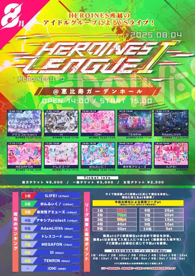LIVE情報 2025年8月4日:『HEROINES LEAGUE Ⅰ』@恵比寿ガーデンホール|iLiFE!【あいらいふ】